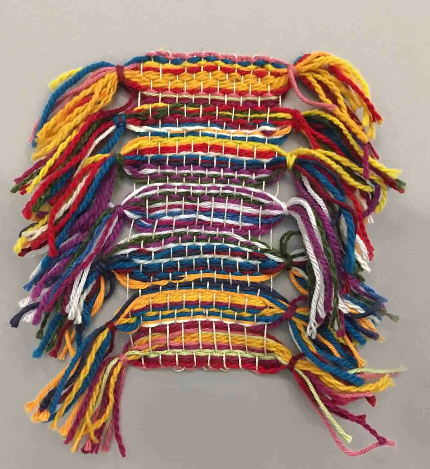 From February through June 2019, I was a Brooklyn Arts Council SU-CASA artist in residence at the Hugh Gilroy Neighborhood Senior Center in the Crown Heights neighborhood of Brooklyn. Every week, members of the senior center community and I met to explore the creative potential of weaving. Many of the participants were beginner weavers when we started. Throughout our time together, we cultivated and maintained a spirit of experimentation in the room, trying as we could to put aside our expectations and ideas about what our weavings should look like, or should do, and let the work emerge as we trusted our intuitions. And, as it can happen in an art studio, one thing led to another to another to another, as the inspiration and innovation flowed. I was, and remain, floored by their work; it is beautiful, and so abundant! Cumulatively, they made over 60 weavings, which we honored in an exhibition at the center on June 12, 2019.
